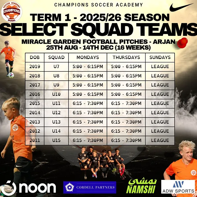 You can register through our website. Via Enquiry Form, Alternatively, you can contact to us via email at info@championsocceracademy.com or contact our Managing Director on +971 56 392 4084 (Aurelian Ute) or any of the coaches.